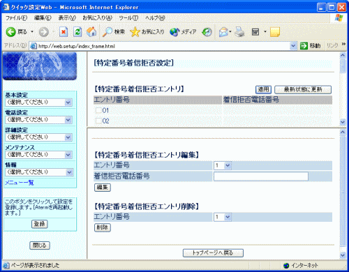 ※ 複数の特定番号着信拒否エントリを編集する場合には、