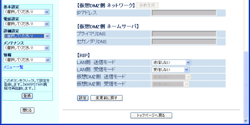 LAN側および仮想DMZ側送受信のRIP(Routing Information Protocol)のモードを選択します。