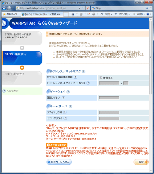 | ■「クイック設定Web(らくらくWebウィザード)」で設定する場合 |
