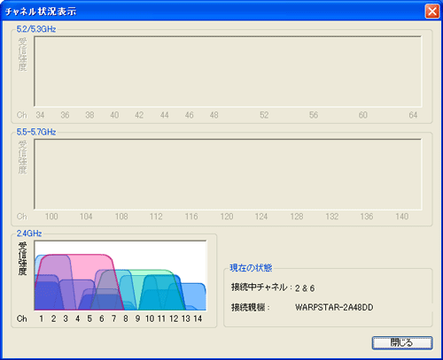近くのアクセスポイントがどのチャネルで使用されているか表示します。