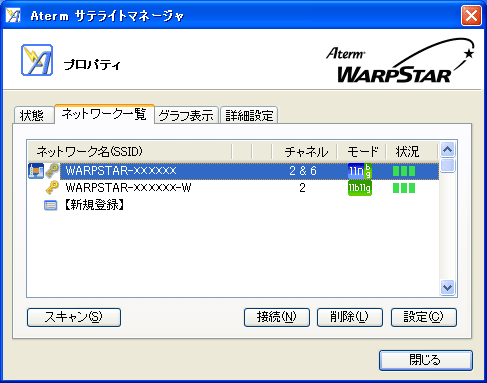 - Windows(R) XPでWL300NU-Gを使用する場合、Windows(R) XPの「ワイヤレスネットワーク接続で設定」した場合は、サテライトマネージャは、ご使用できません。