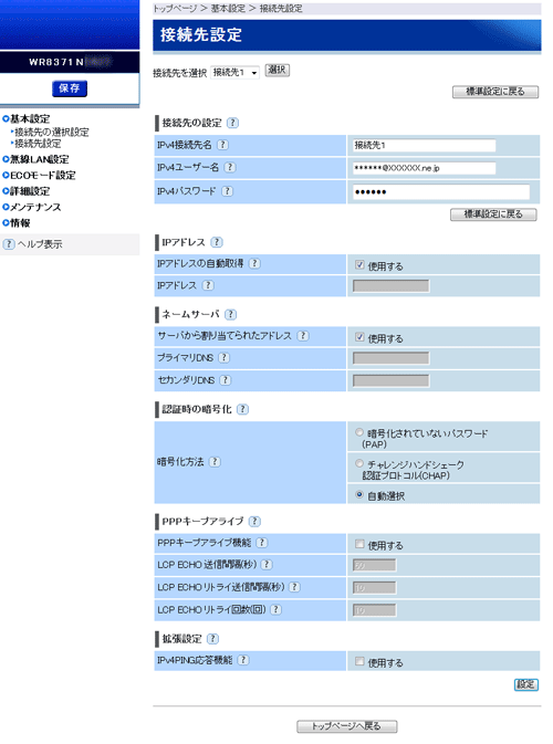 PPPoE接続時にプロバイダから割り当てられるIPアドレスを使用する場合は、チェックをします。