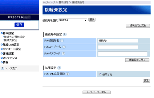 接続先は、最大4箇所設定できます。設定する接続先は、「接続先を選択」で選択することができます。
