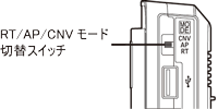RT/AP/CNVモード切替スイッチは、背面にあります。 |