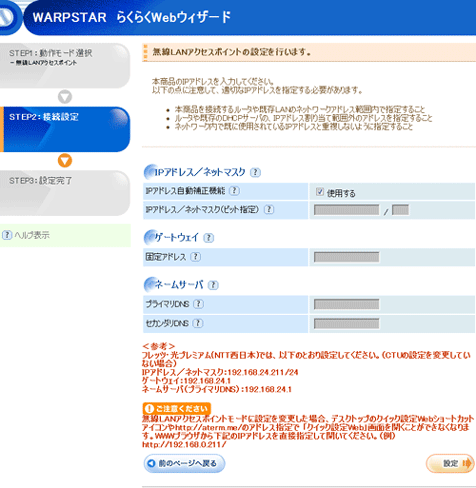| ■「クイック設定Web(らくらくWebウィザード)」で設定する場合 |
