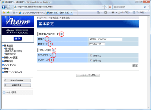 [設定]をクリックする前に[トップページへ戻る]をクリックすると、変更した設定が反映されません。 |