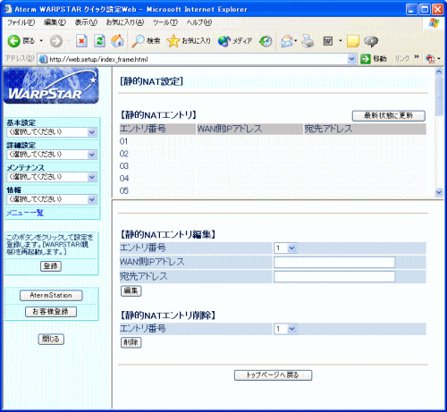 | 【静的NATエントリを編集する場合は、下記の■静的NATエントリ編集を参照してください】 |