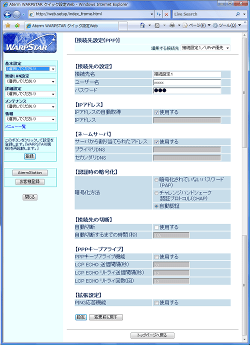 ●複数固定IPサービスを使用しない場合(PPPoE)