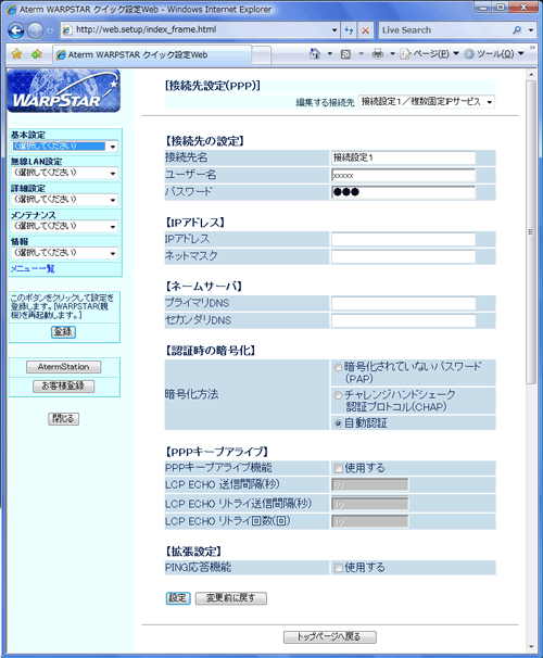 ■複数固定IPサービスを使用する場合(PPPoE) |