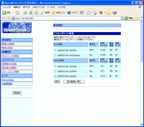 [アクセスポイント検索]をクリックして使用可能なアクセスポイントを選択することもできます |