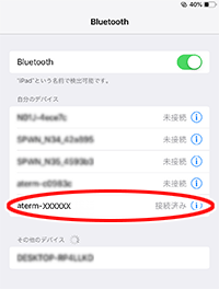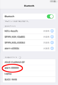 子機側に本商品のBluetooth用デバイス名「aterm-xxxxxx」が表示されるので、タップします。