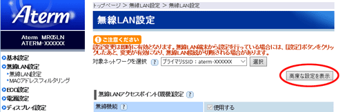 「無線LAN設定」-「無線LAN設定」をクリックします。