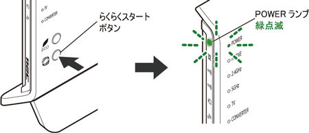 - 本商品のらくらくスタートボタンを長押し(約6秒)、POWERランプが緑点滅になったら放す