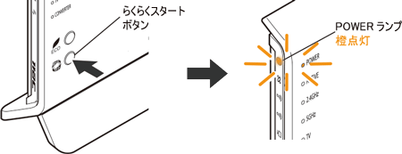 しばらく待って、POWERランプが橙点滅に変わったら、30秒以内にらくらくスタートボタンを長押しし、POWERランプが橙点灯したら放す