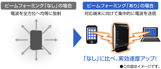 - ※ ビームフォーミングを利用するには、受信側の端末もビームフォーミングに対応している必要があります。