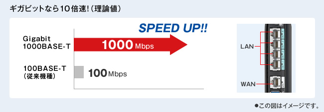 ブロードバンドとの接続も、有線LANもギガ対応(1000Mbps)! “光”に応える高速通信[WAN/LAN全ポートギガビット対応]