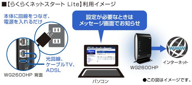 さらに、インターネットへの接続回線の設定が必要なときもおまかせ、手間いらずです。