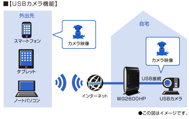WG2600HPのUSBポートに接続したUSBカメラ※5の画像を、WWWブラウザで見ることができます。
