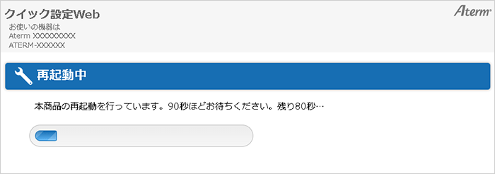 『再起動中』画面が開きますので、表示のカウントが終了するまで、しばらくお待ちください。