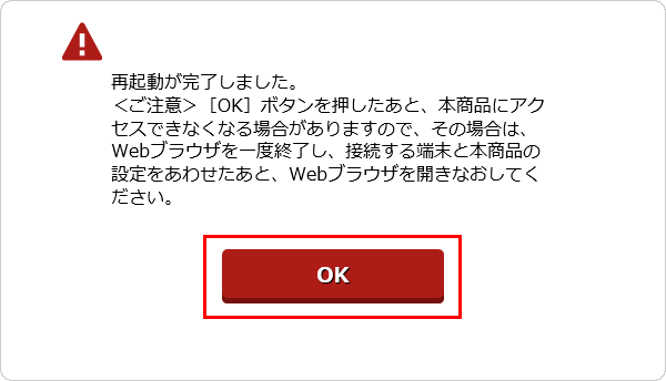 以下の画面が表示されますので、【OK】ボタンを押してください。