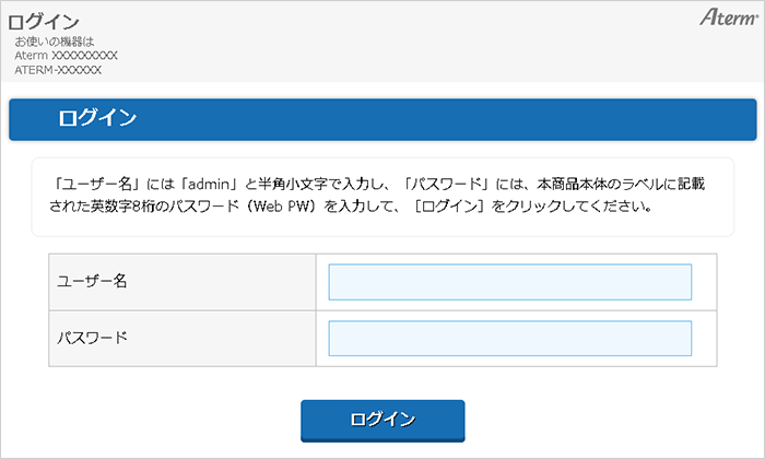 クイック設定Webのログイン画面が表示されなかった場合は、Webブラウザをいったん閉じて、端末とAtermの接続状態を確認してください。