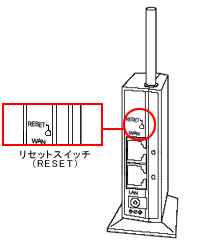 - 電源が入った状態で、リセットスイッチを2、3秒押し続けます。