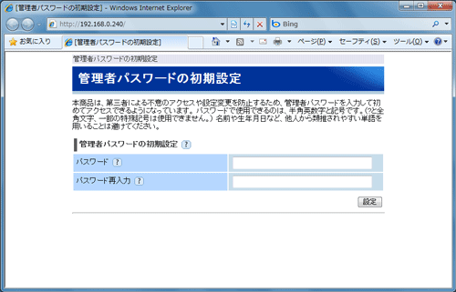 WWWブラウザを起動し、本商品のIPアドレスを入力し、設定画面のページを開く