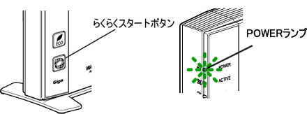 無線LANアクセスポイント(親機)のらくらくスタートボタンを長押し(約6秒)、POWERランプが緑点滅になったら離す