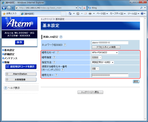 暗号化モードでWEPを使用する場合 |