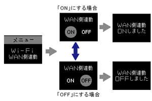 Wi-FiのWAN側連動をONに切り替えたときに表示 |