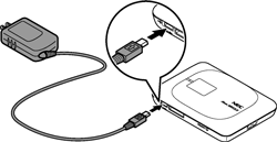 なお、USBポートからの充電は、ACアダプタを使用した場合よりも充電時間が長くなります。