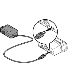 | 本体に直接接続して充電する場合と、クレードル(オプション品)にACアダプタを接続して充電する方法があります。 |