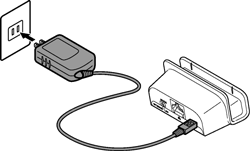 クレードルのACアダプタ接続ポートにACアダプタのmicroUSBコネクタを接続する |