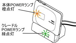 充電が開始され、本体のPOWERランプが橙点灯し、クレードル側のPOWERランプが緑点灯する