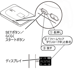 SETボタンを長押しし、ディスプレイに「ファームウェアダウンロード中」と表示されたら
