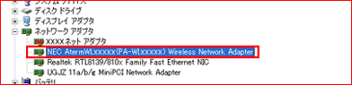 [NEC AtermWLXXXXXX(PA-WLXXXXXX)Wireless Network Adapter]が表示されていることを確認する