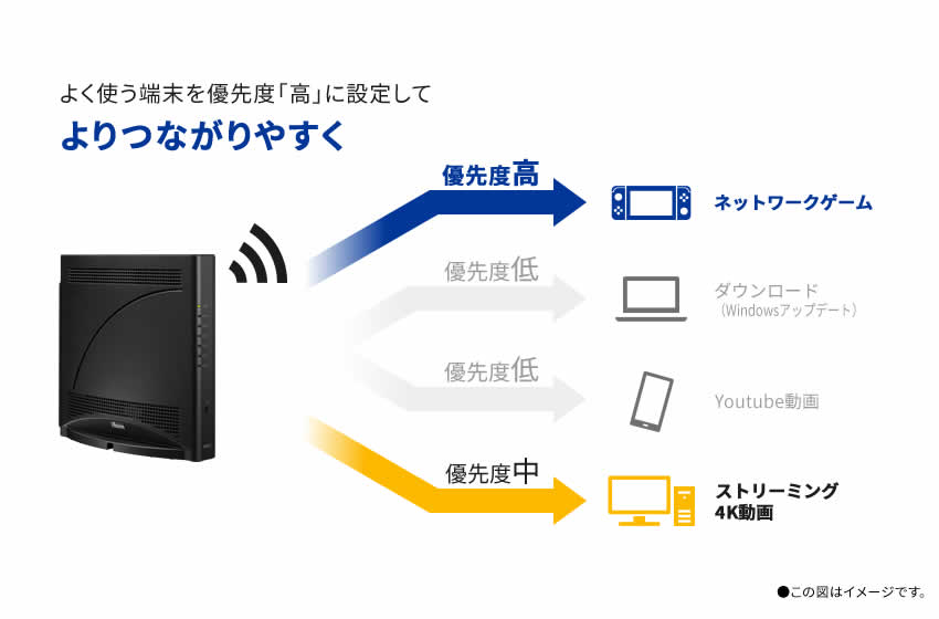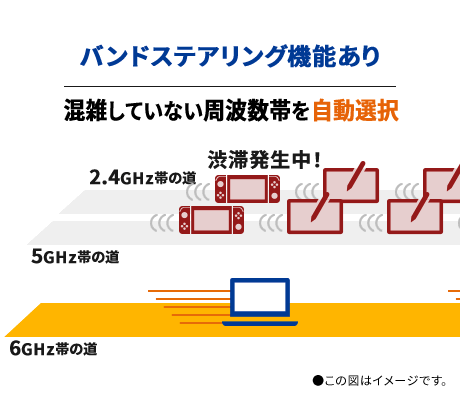 - ※各周波数帯に接続する子機は、Wi-Fiがその周波数帯に対応している必要があります。