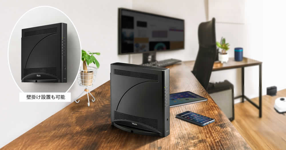 6GHz帯/5GHz帯/2.4GHz帯というトライバンドの性能を持ちながら、アンテナを外に飛び出させず内蔵型にすることで、インテリアやお部屋の雰囲気を邪魔することなく設置できます。