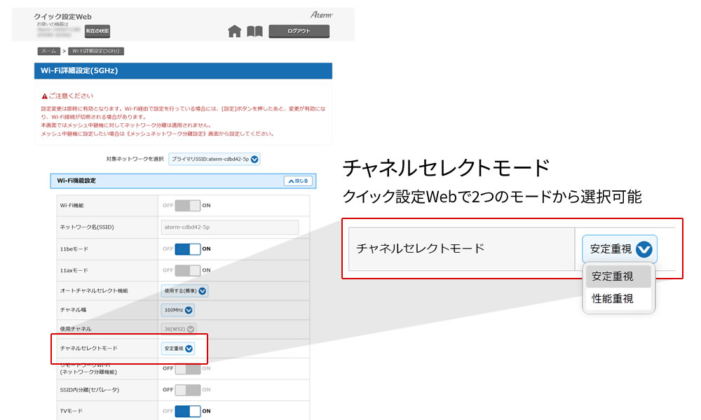 - ※2MLO(Multi-Link-Operation)の同時モード(MLMR:Multi-Link Multi-Radio)は端末側も対応している必要があります。MLO動作時は、MLMR(Multi-Link Multi-Radio)の固定利用はできません。