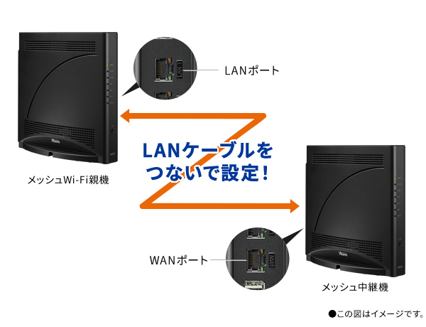- *【メッシュ中継機能】は、有線接続でメッシュWi-Fi親機と接続することも可能です。