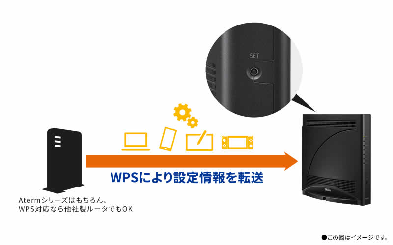 Atermシリーズはもちろん、他社製ルータでもWPS対応であれば【Wi-Fi設定引越し機能】が利用可能です。