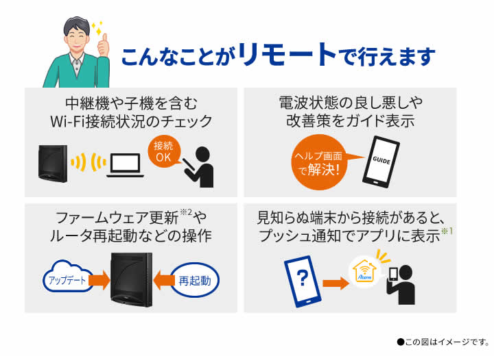 - *本機能をご利用になる場合は、本商品の機器情報を当社が運用するサーバへ通知します。なお、本機能をご利用にならない場合は設定により停止することができます。詳しくはこちらでご確認ください。