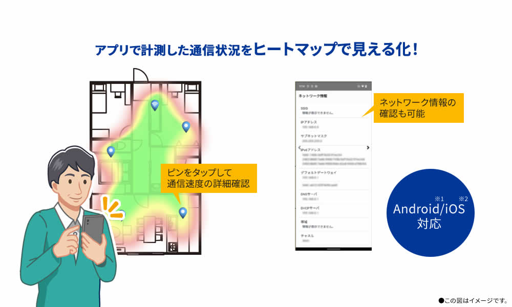 アプリ「Aterm ホームネットワークリンク」(Ver.5.1.13)のヒートマップ機能を使用