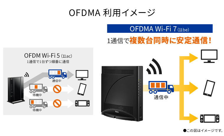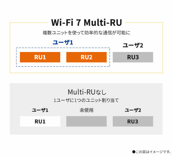 - *受信側の端末がWi-Fi 7およびMulti-RU機能に対応している必要があります。