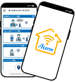 「Aterm ホームネットワークリンク」は、スマホやタブレットからNECのWi-Fiルータ・中継機 Atermシリーズの初期設定やメンテナンスが行える統合型アプリです。