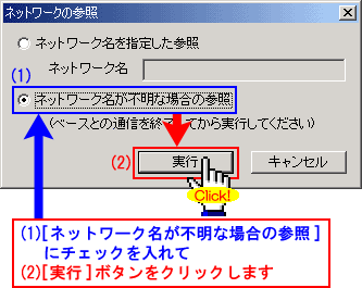 (1)[ネットワーク名が不明な場合の参照]にチェックを入れて、