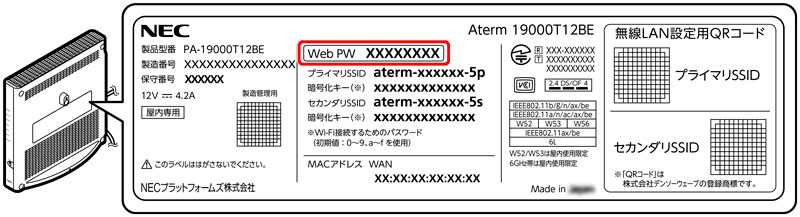 19000T12BE の管理者パスワード(Web PW)の記載箇所