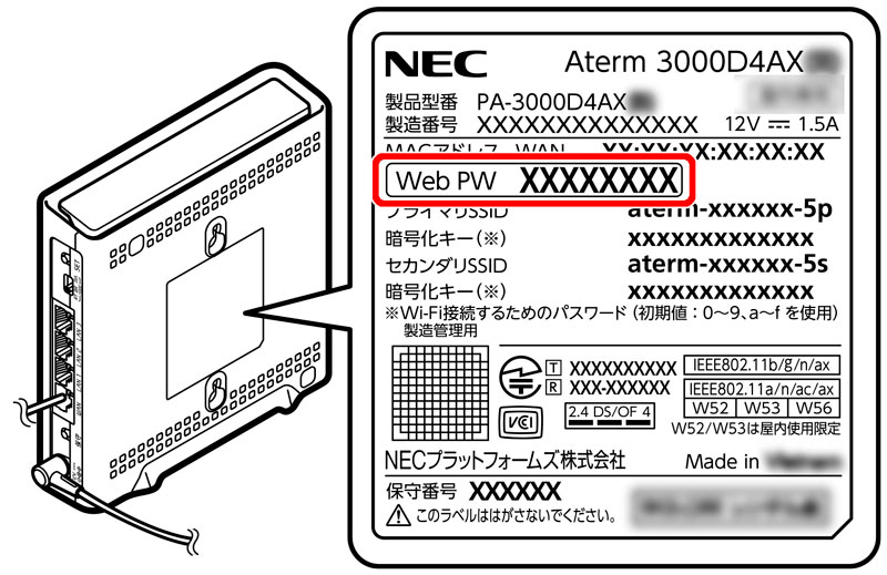 3000D4AX の管理者パスワード(Web PW)の記載箇所