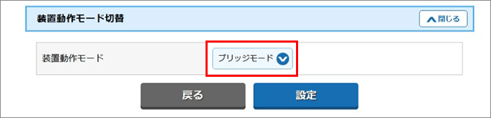 「装置動作モード切替」で「ブリッジモード」を選択してください。