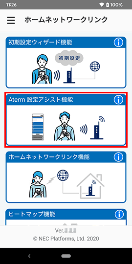 ※ お使いのスマートフォンとAtermが、Wi-Fi(無線)またはLANケーブル(有線)で接続されている状態で行ってください。